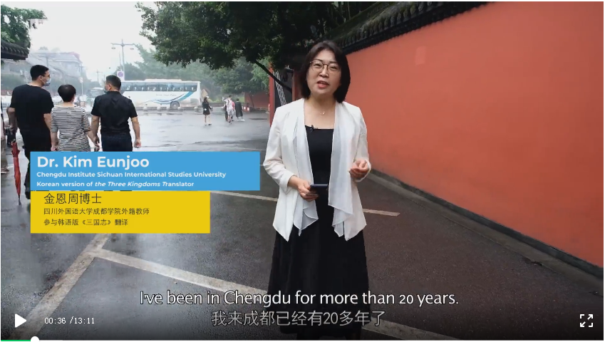 在13分钟的视频里,来自韩国的金恩周博士带领观众遍游武侯祠,以专业的讲解讲述三国故事。值得一提的是,金恩周博士本身就是三国文化的“粉丝”,她曾在2017年翻译《武侯祠里的三国》一书,并将这本书作为礼物送给了韩国总统文在寅。视频在Chengdu Plus海外新媒体YouTube账号上获得了许多韩国网友的点赞和评论,还有不少欧美国家的网友也留言表达了对武侯祠的向往和对三国文化的喜爱。