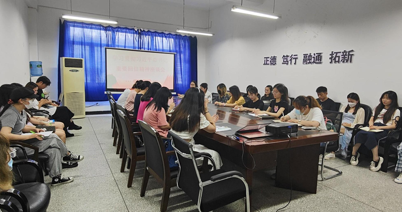 6月27日,校团委在第一教学区C109教室召开学习习近平总书记给南京大学留学归国青年学者回信精神座谈会。校团委书记罗容,校院两级团学主要学生干部参加会议。
