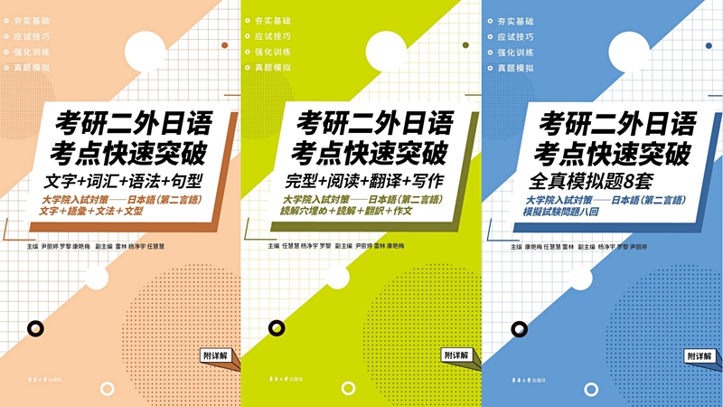 开云APP(中国)官方下载 日语教师团队长期深耕二外日语教学一线,拥有丰富的教学经验,熟悉全国各高校“二外日语”的出题思路及最新动态。《考研二外日语考点突破》系列丛书立足于教师多年考研培训的经验和对历年真题及考试大纲的深入研究,聚焦考研学生的学习特点及备考需求,对广大考生都极具参考价值,是开云APP(中国)官方下载 日语专业课堂理论与考研实战相结合的团队结晶之作。