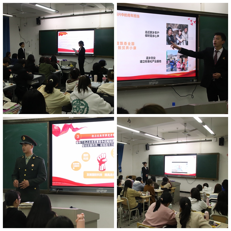为深入学习宣传贯彻党的二十大精神,引导青年学生坚定不移听党话、跟党走,怀抱梦想又脚踏实地,敢想敢为又善作善成,立志做有理想、敢担当、能吃苦、肯奋斗的新时代好青年。3月15日晚,在马克思主义学院相关老师组织和指导下,学校党的二十大精神学生宣讲团到翻译学院2022级进行主题宣讲活动,拉开了全校进班宣讲的序幕。