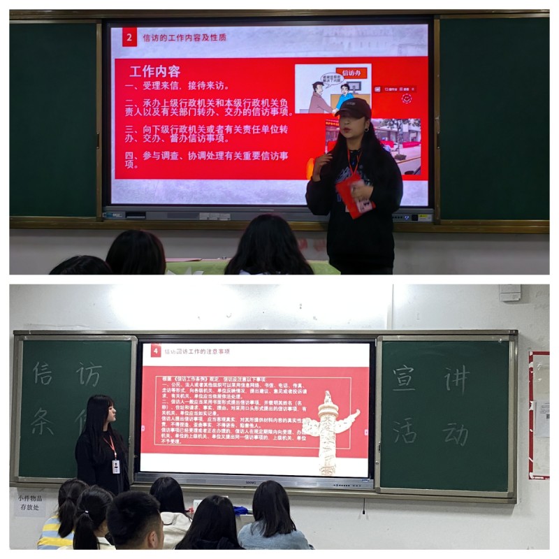 本次活动通过政策宣讲、集体学习、互动问答、主题班会等形式,向同学普及了群众信访知识,解读“如何维护自身合法权益”和“信访规范行为”等方面的法律知识,引导同学们树立依法信访意识。宣讲同学解答细致,共计解答咨询2000余次,师生纷纷表示受益匪浅。