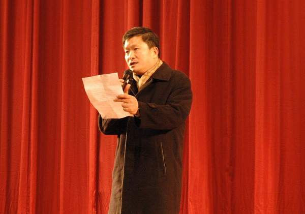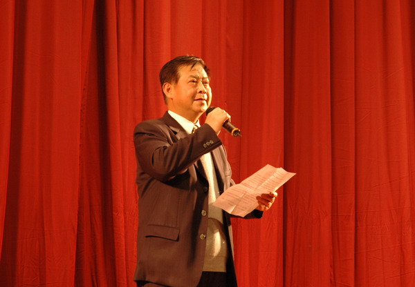 王鲁男副院长代表四川外语学院党政对我院取得的优异成绩表示热烈祝贺,对全体师生的辛勤付出表示亲切慰问,并希望我院在2008年乘着十七大的东风,树立新目标,赢得新发展。