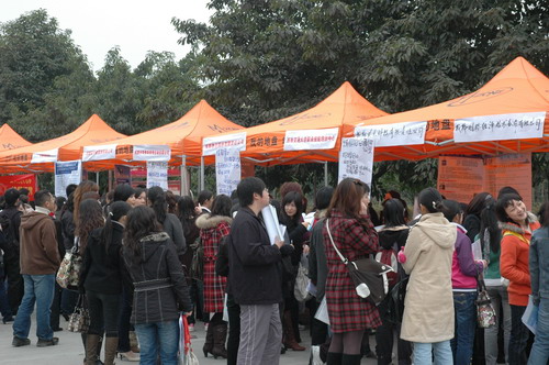 学院高度重视2009届毕业生的就业工作,各部门、系按照学院的统一安排,早准备,早谋划,各项就业工作一直稳步扎实推进。学院就业指导中心分系举行了就业指导讲座,并邀请了市人事局专家做了就业专题讲座,对2009届毕业生做了有效的就业指导。同时,学院广泛宣传,积极联系用人单位,吸引了中国水利水电七局、四川外经公司、广西健一药业、茂松软件公司、望江宾馆、成都外国语学校、四川译采翻译有限公司、成都市中国青年旅行社等各行业的80余家用人单位前来我院选聘2009届毕业生。在双选会现场,成都市人才交流中心设立了公共服务咨询点,学院就业指导中心和各系部也设立了服务点,为毕业生和用人单位提供了周到的服务。学院领导也来到双选会现场,了解了各项工作的开展情况,走访慰问了毕业生和用人单位代表。