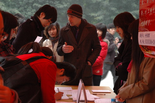 2010届毕业生大型招聘会是我院就业双选周的一项重要活动,吸引了130余家用人单位前来选录人才,其中包括安捷伦、埃森哲、马士基等世界500强企业,葛洲坝集团、东方电气集团、中国南车集团、中国水利水电七局、中国水利水电十局、支付宝等中国大型知名企业,望江宾馆、凯宾斯基酒店、天府丽都酒店等五星级酒店,成都市环球翻译公司、成都市语言家翻译社、成都市译采翻译公司、美中国际、英迈英语培训学校等各类翻译公司和外语培训机构,以及各类涉外企业和事业单位。各用人单位提供的就业岗位针对性很强,对毕业生外语专业能力和综合素质要求较高,与我院学生的特点比较契合。在众多非常有吸引力的岗位面前,我院2010届毕业生积极推荐自我,与各用人单位认真沟通交流,展现自己的才能和素质。各用人单位在接触了2010届毕业生后,对我院学生优异的专业能力非常赞赏,他们表示,不论是自荐材料还是现场综合考核,我院学生都展现出了扎实的专业能力和较强的职场素质,非常符合用人单位的需求。