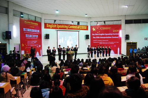 11月25日、26日,由教务处主办、英语经贸系和英语翻译系分别承办的第三届英语演讲比赛、第五届口译大赛在多功能中厅举行。