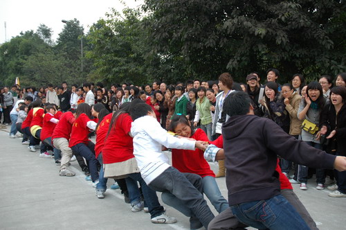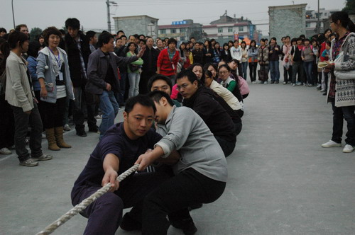 新生拔河比赛是我院的一项传统体育赛事,旨在通过阳光健康的体育活动,促进新生班级交流,培养新生团队精神。本次新生拔河比赛分为预选赛和决赛两个阶段,包括以系为单位的团体赛和以班级为单位的个别赛以及教职工友谊赛3项赛事,自10月12日活动启动以来,得到了全院新生的积极响应。经过十几天的激烈角逐,英语外事管理系、英语师范系和英语翻译系分获团体赛前三名,英语经贸系2009级经贸方向12班获个别赛冠军和“团队之星”荣誉称号,英语师范系2009级师范方向2班、英语经贸系2009级经贸方向3班获个别赛亚军和季军,英语旅游系教师代表队夺得教职工友谊赛冠军,德语系法语系教师代表队和英语经贸系教师代表队分获二、三名。