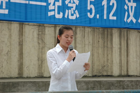 默哀毕,陈慰同学作为学生代表宣读了倡议书,倡议全院师生铭记抗震救灾精神,深切缅怀遇难同胞,真诚感恩爱心社会,携手奋进共建和谐,以实际行动,为灾后重建、为国家建设发展、为中华民族伟大复兴做出我们应有的贡献。在缅怀同胞、感恩社会、凝聚精神的同时,更应居安思危,增强防灾意识,学习防灾知识,提高防灾能力,更加从容地面对自然灾害的风险、威胁和挑战。