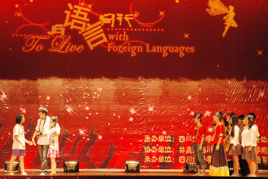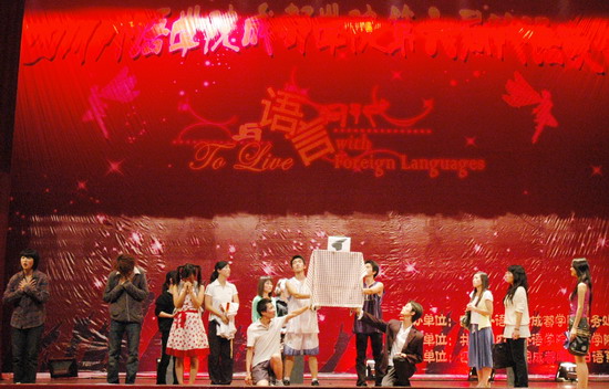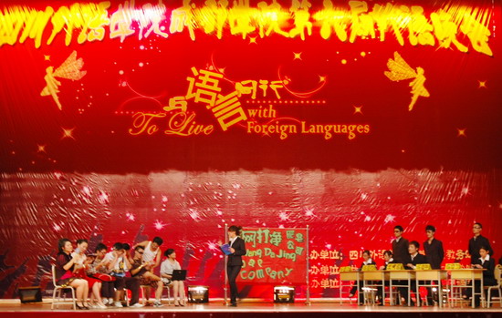 在决赛中,同学们倾情演绎,用流利的口语和丰富的内容给现场观众带来了一场精彩纷呈的视听盛宴,节目有的反映对当前大学生就业、圆明园兽首海外拍卖事件等热点问题的思考,有的再现抗震救灾优秀人物和生活中优秀共产党员的先进事迹,有的表现“梁祝”、“堂吉诃德”等中外传统经典剧目,还有的演绎温馨亲情、美好青春等内容,让现场观众在感受外语魅力的同时,更享受了一次丰富而美妙的艺术之旅。