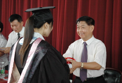 李泽同志宣读了表彰优秀大学生的决定,在主席台就坐的领导为获奖毕业生隆重颁奖。