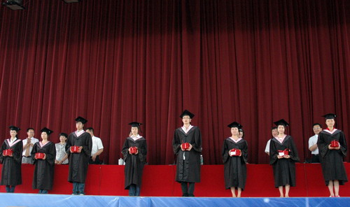 典礼在激昂的国歌声中拉开序幕。尹大家院长首先代表学院党委、行政和全体师生员工向2009届毕业生表示诚挚的祝贺,他希望2009届毕业生继续弘扬学院精神,满怀激情,放飞梦想,将自身的成长发展与服务社会、奉献祖国紧密联系在一起,做一个对人民、对社会、对国家有所贡献的人才。