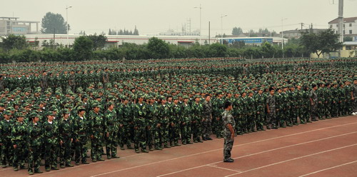 目前,我院2009级新生军训正如火如荼地进行。部队教官按照学院统一要求,对2009级新生进行严格训练。2009级新生积极参训,认真学习国防知识,刻苦锻炼身体素质,努力锤炼意志品质,展现出了新时期大学生应有的良好精神风貌。
