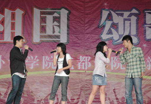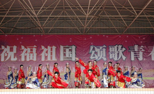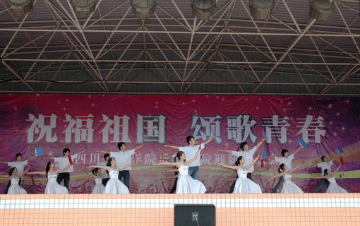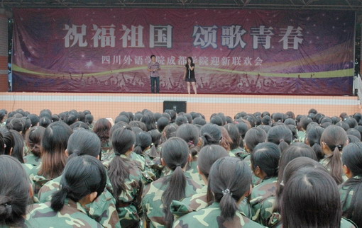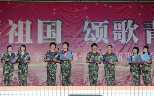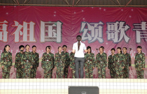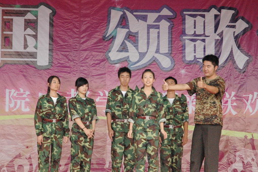 9月25日下午,以“祝福祖国,颂歌青春”为主题的2009级新生军训联欢会在学院第二运动场举行。我院大学生艺术团与军训新生、部队教官同台联欢,为2009级新生的军训生活增添了精彩和欢乐。