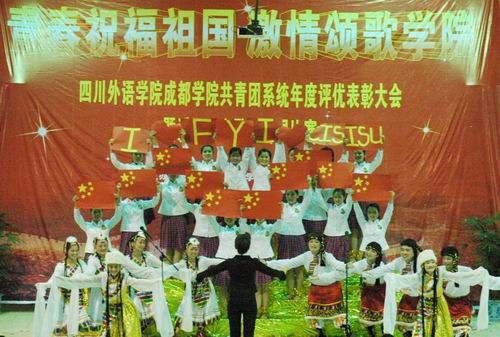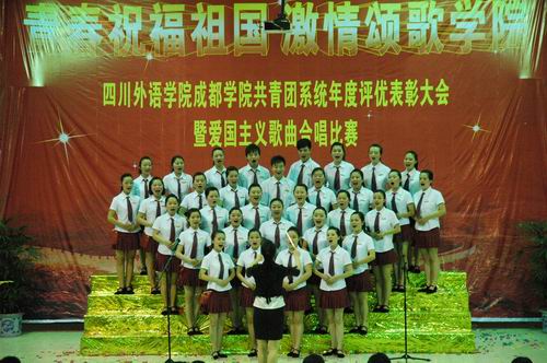 爱国主义歌曲合唱比赛一等奖:英语翻译系2009级翻译方向6班团支部