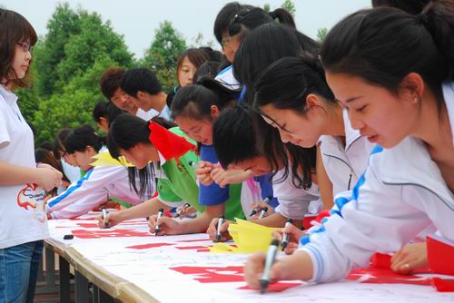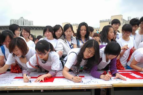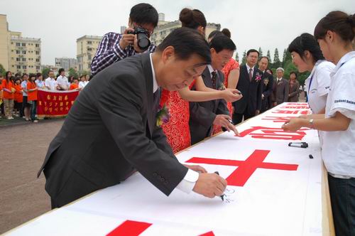党委副书记、副院长李泽同志宣布“激情满怀迎十年校庆,凝心聚力促学院发展”签名仪式开始后,学院领导和广大师生一起,在现场的签名横幅上郑重写下自己的名字,深情表达了对学院十年华诞的真诚祝福。