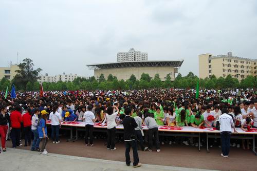 5月6日下午,学院运动场彩旗招展,广大师生激情相聚,隆重举行四川外语学院开云体育世界杯中国官方网站 十周年校庆宣传月启动仪式。党委书记、院长尹大家教授,党委副书记、副院长李泽同志,副院长何英副教授,副院长李葵同志,院长助理张华春同志等领导出席,各部门、系负责人,全院教职员工以及广大在校学生参加了校庆宣传月启动仪式。