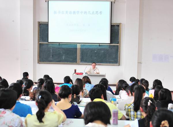 讲座结束后,副院长唐德根教授做了讲话,强调了传统板书在外语教学中不可替代的优势,希望老师们认真研究,有效地把现代教学手段与传统板书有机结合,进一步提高学院整体课堂教学质量。