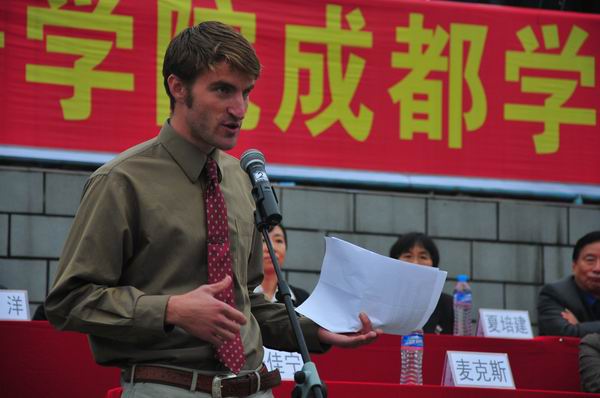 俄语西班牙语系朱加宁博士作为教师代表发言,她与同学们分享了自己的成长历程,介绍了自己对俄语的热爱和对学院的感情,并祝愿同学们学业有成、鹏程万里。外籍教师代表麦克斯在发言中回忆了自己大学新生生活的有趣往事,他认为学习语言就像倾听音乐一样美妙,希望和同学们一起在语言学习中度过美好的时光。在校生代表邓雅荻同学介绍了学院的优秀学长学姐对自己的影响,希望和2011级新生一起,在学院的热土上激情奋斗,实现人生理想。新生代表、意大利语专业燕铮同学在发言中表示,将铭记学院校训,弘扬光荣传统与优良校风,为学院的发展贡献力量,要让学院因2011级同学们的优异成绩而骄傲。