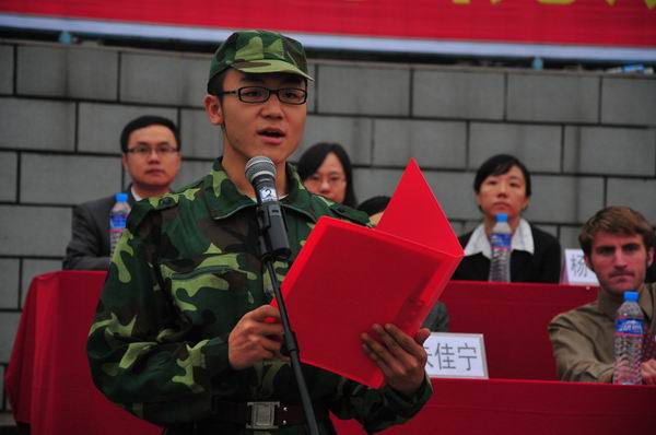 副院长何英代表学院党政,向2011级新生完成军训任务表示了热烈的祝贺,向执行本次军训任务的部队教官表示了诚挚的感谢,她向2011级新生介绍了我院的发展情况,希望同学们勤学苦练,努力奋进,把自己培养成一名优秀的专业外语人才。77108部队政委王树俊介绍了2011级新生的军训情况,希望同学们在大学生活中继续保持和发扬军训成果,努力学习,成为祖国建设的栋梁。
