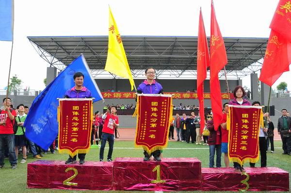 经过为期两天的激烈角逐,英语旅游系代表队、英语外事管理系代表队、英语经贸系代表队分获团体总分前三名,东方语系代表队获体育道德风尚奖。英语旅游系刘畅、李婉君还分别打破了男子跳高、女子三级跳远的学院纪录。