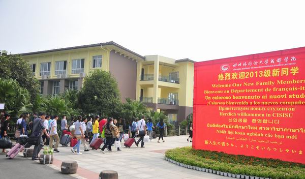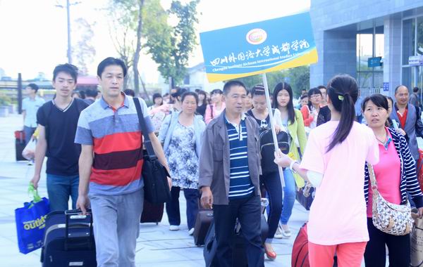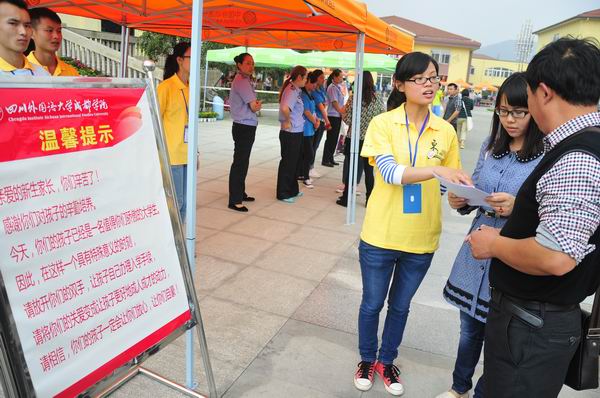 周到热情的迎新服务一直是我院迎新工作的传统。今年,我院在青城山快铁站和都江堰客运中心设立了迎新接待点,安排专车接送新生和家长。在校园里,许多同学踊跃参与到迎新现场的志愿服务工作中,新生一踏进学院校门,就有各系的学生志愿者热情接待,帮助新生搬运行李,引导新生办理手续,让新生顺利、高效地完成各项报到程序。“没想到学校安排得这么细致!”一位来自陕西的学生家长说。