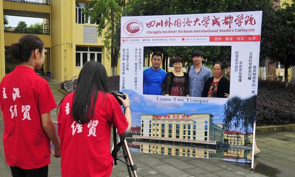 “不抛弃、不放弃、以奋发之姿致青春,做梦想的合伙人;敢尝试,敢创新,让青春传递正能量,活真实的小时代。”这两条英语经贸系布置在迎新现场的横幅,吸引了很多新生和家长的目光。“这两条横幅不错,大学生就应该有这样的品质!”一位江苏的家长说。在迎新现场,翻译系的“敢梦敢当” 个性展板、德语系的新生心愿墙、英语经贸系的合影相框、英语旅游系的手绘校园地图、东方语系的家长寄语等也赢得了广大新生和家长的热烈好评。“学长学姐们太有才了,他们的创意和想法值得我们新生好好学习!”一名成都的新生说。
