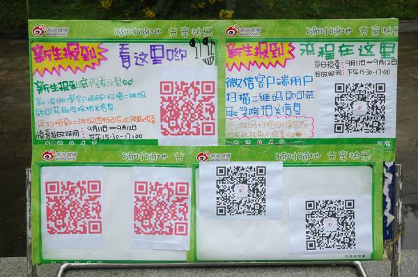 迎新现场的温馨提示引导新生自主报道