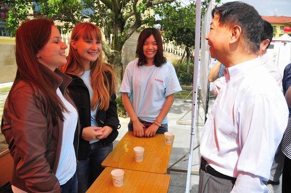 学院领导与参与迎新的外籍教师和外国留学生交流