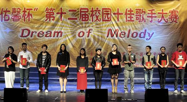 经过激烈角逐,岳四平、刘义、游翔、刘庭楚、胡蝶、罗天成、吴远航、谷淳熙、张蕾柳南、申书宇获“校园十佳歌手”称号,其中,来自英语外事管理系2013级的岳四平同学荣获本届“校园十佳歌手”大赛冠军,英语师范系2013级的刘义同学获亚军,翻译系2013级的游翔同学获季军。