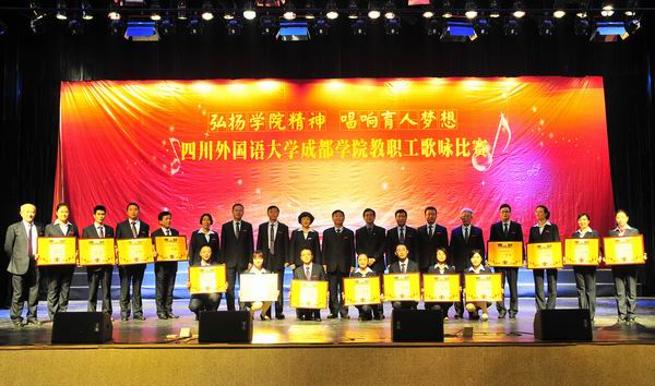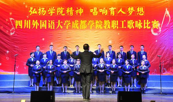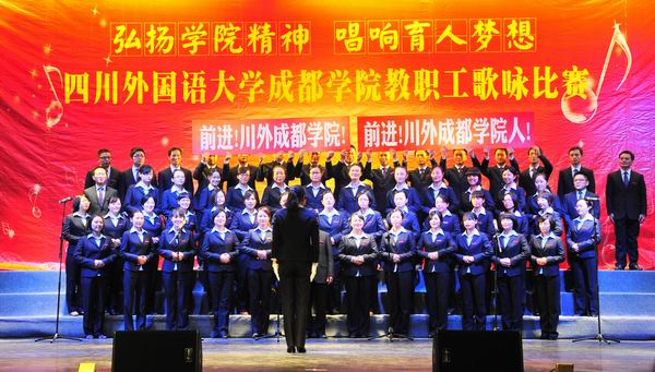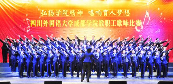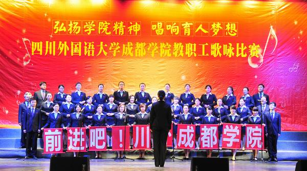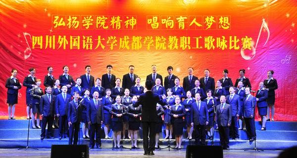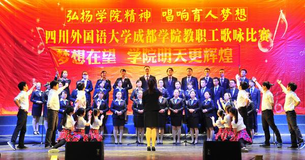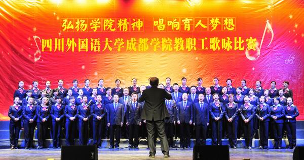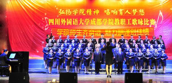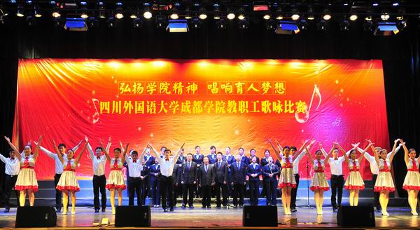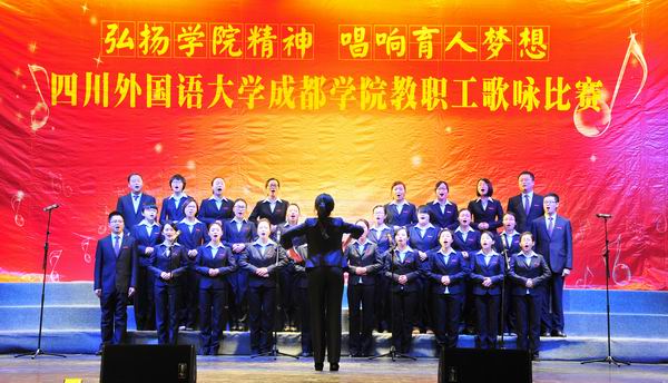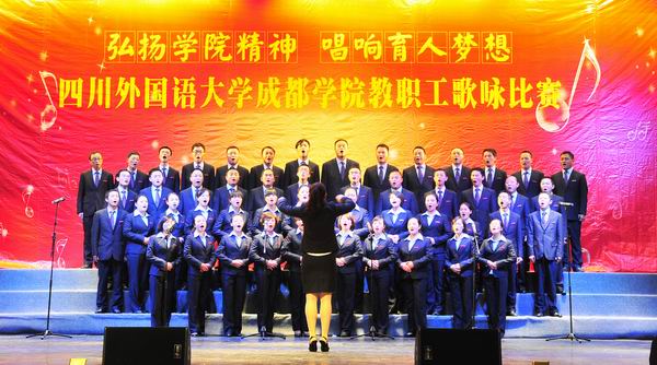 岁月如歌,吟唱矢志教育的情怀;激情如歌,奏响育人教书的乐章。11月14日晚,我院在观澜堂隆重举行了“弘扬学院精神 唱响育人梦想”教职工歌咏比赛。四川外国语大学校长李克勇,我院党委书记、院长尹大家,副书记、副院长李泽,副院长何英,副院长李葵,副院长俞永康,总督学李云清,副书记、院长助理张华春等领导出席并观看了比赛。