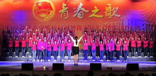 院系共青团干部代表演唱歌曲《光荣啊,中国共青团》