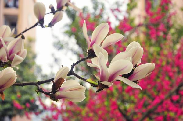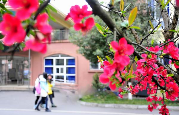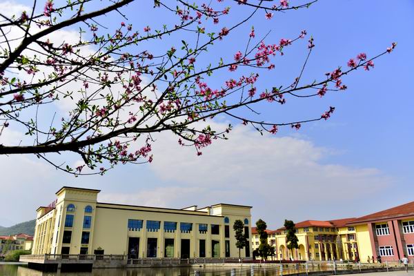 阳春三月,校园内繁花争艳。南湖边、教学楼外、德馨苑里、办公楼前……每个角落都充满春天的气息。粉色的桃花灼灼其华,金黄的迎春热烈灿烂,纯白的樱花如雪如玉,大红的海棠典雅芬芳……美丽的校园被春色温暖拥抱,被芬芳温柔环绕。学子们勤学的身影和琅琅的书声,交汇在满园的春色中,尽情演绎着学院的生机与活力!