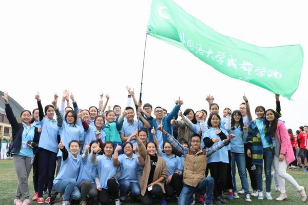 下午3点15分,“多足虫竞走”打响本届运动会的“第一枪”。这个项目最考验团队合作,场上选手很拼,场下助威也很猛。在预赛后共有4支队伍杀入决赛,角逐最后的冠军。最终,法语意大利语系拿下第一名。