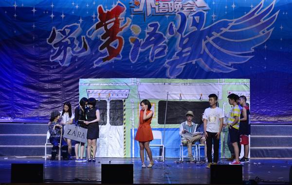 经过精心准备和排练,同学们用多国语言,演绎了一幕幕精彩的短剧。德语系同学表演的《柏林墙下》,展现了战争对普通人物给予的巨大冲击;英语师范系同学带来的《女孩的魔法森林》,通过魔幻的场景呼吁人们呵护绿色地球;翻译系同学带来的《白求恩》,再现了白求恩大夫来到中国救死扶伤的感人故事;日语系同学演绎的《忠犬八公物语》,将人和动物之间的真挚感情表现得淋漓尽致;俄语西班牙语系同学原创的《开往天堂的地铁》,取材于西班牙马德里“3·11”事件,表达了对恐怖袭击的谴责和对美好生活的珍惜;文化传媒系同学表演的《金陵十三钗》,通过对电影场景的改编,展现了战火下人性的伟大;英语经贸系同学表演的《试镜》,用歌舞结合的方式,讲述了时下年轻人追梦的故事;东方语系同学表演的《象牙》,以大象的遭遇为主线,表达了和谐相处的主题。我院俄罗斯、韩国、哈萨克斯坦留学生也应邀登台,用汉语表演了他们精心准备的短剧《梁山伯与祝英台》。晚会中,同学们流利的外语、出色的创意和良好的舞台表现,赢得了现场师生一次又一次的热烈掌声。