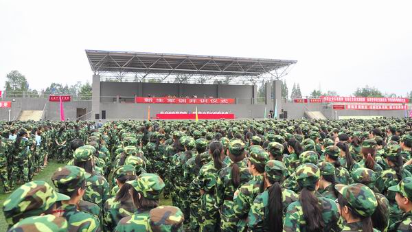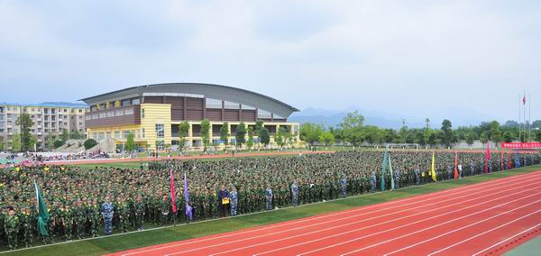 9月18日下午,我院2015级新生军训开训仪式在运动场举行。我院副院长、军训领导小组组长李葵,副书记张华春,承训部队副司令陈炳伟以及我院各系党总支书记出席仪式。仪式由张华春同志主持。全体2015级新生身着戎装、英姿飒爽,排着整齐的队列参加了开训仪式。