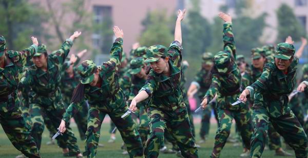 秋高气爽,丹桂飘香,2015级新生军训结业仪式在清新宜人的氛围中进行。在庄严的升旗仪式后,新生们踏着《分列式进行曲》的激昂旋律,迈着矫健的步伐依次通过主席台,随后,同学们进行了军训科目表演,刚毅的男子军体拳,飒爽的女子匕首操,细腻的“感恩”主题手语,整齐的方阵队形,充分展现了同学们的军训成果和良好的精神风貌。在队形表演中,同学们还用红旗拼出“CISISU”和“15”字样,“2015级全体新生祝学院15岁生日快乐”的响亮声音响彻体育场,新生们用这种特别的方式向学院十五周年华诞表达了美好的祝愿,赢得了现场师生的热烈掌声。