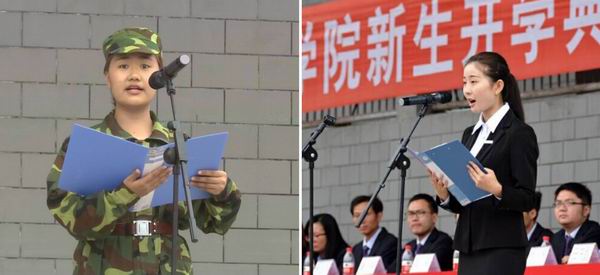 文化传媒系2014级新闻学2班的侯淅雨同学在发言中分享了自己大学生活的体会,鼓励学弟学妹们乐学善思,厚积薄发,为梦想而努力拼搏,学有所成。新生代表、以超四川省一本线48分的成绩考入我院西班牙语专业的严诗悦同学在发言中说,自己怀着对外语的热爱,在众多高校中选择了有着齐全语种、有着优良校风的我院,她表示,将以更饱满的激情和昂扬的精神,以优秀的学长学姐为榜样,秉承学院“团结、勤奋、求实、创新”的校训,勤奋学习,锐意进取,为实现自己的梦想而不懈努力。