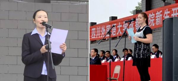 英语师范系赵盈老师作为教师代表发言,她描绘了同学们在学院学习生活的温馨画面,朗诵了一首精彩的小诗,勉励新生勇敢追梦,让大学生活充实而幸福。来自美国的外籍教师Kimberly向新生致以了亲切的问候,鼓励同学们合理安排时间,在大学的精彩时光里,努力学习,取得收获与成功。