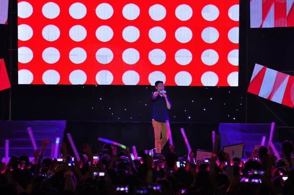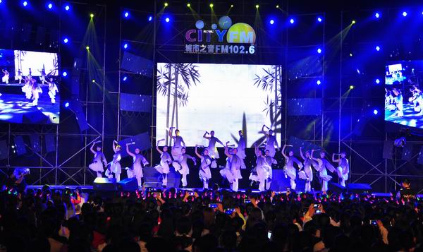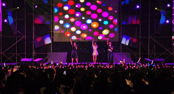 歌手金贵晟、戴爱玲、韦礼安在迎新晚会中献唱
