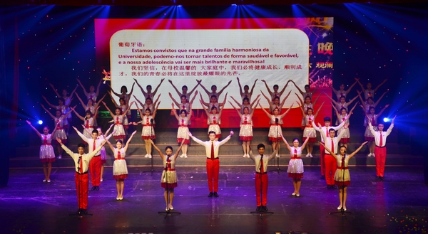 晚会中,师生们饱含激情,表演了精彩纷呈的节目。由同学们带来的开场表演唱《光荣与梦想》,气势磅礴,振奋人心。教师艺术团的老师们倾情投入,带来了诗朗诵《征程十五载 踏歌再向前》,讲述了与学院风雨同舟的铿锵历程,表达了携手开创美好未来的坚定信心;由学院天回山创业教师代表、骨干教师代表、海归教师代表、毕业留校工作的教师代表等演唱的我院原创歌曲《我的心只留在这里》,倾诉了老师们对学院真挚而深厚的感情,让人非常感动;老师们还带来了男声四重唱《Sunrise Sunset》《跟你走》,展现了德艺双馨的良好风采。同学们用12门外语表演了诗朗诵《献礼母校》,充分体现了我院的外语特色和广大学子热爱学院、以院为荣的情感共鸣;激扬的女子群舞《我心飞翔》、男子群舞《草原欢歌》,彰显了同学们奋发向上的青春风貌;感人的情景舞蹈《大山支教》,再现了我院学子奉献社会、爱心支教的生动故事;曾荣获四川省一等奖的排舞《舞动太极》,展现了我院校园文化的特色魅力。2006届校友肖凡(成都建筑材料工业设计研究院人力资源外事主管)专程回到母校,用一首感人的《老师我想你》,表达了广大校友感恩母校、祝福母校的真诚心声。学生艺术团表演的民乐《花儿与少年》淳朴率真,管乐《蓝色多瑙河》华丽高雅,表达了同学们欢庆元旦的喜悦之情和喜迎新年美好展望;全体外籍教师演唱的歌曲《We Are The World》旋律悠扬,俄罗斯、韩国留学生表演的武术《中国功夫》激情四溢,展现了我院国际交流的成果和中外文化的精彩交融。晚会最后,学生合唱团演唱了我院的原创歌曲《永远的爱》,再次表达了师生们对学院最真挚的感情,随后全场师生高唱《前进吧,川外开云体育世界杯中国官方网站 》,让晚会在激昂的歌声中圆满落下帷幕。