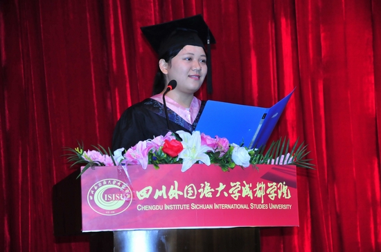 尹院长代表学院党政,向2016届毕业生表示了热烈的祝贺和真挚的祝福,饱含深情地回忆了几年来同学们与学院一起,在新校区同奋进、共发展的难忘历程,对2016届毕业生勤于学习、敢于拼搏、善于探索、勇于担当的精神风貌和取得超过260人成功考研、超过95%的就业率、超过93%的法语专八过级率、涌现了众多优秀学生等优异成绩给予了高度评价,希望全体毕业生继承川外开云体育世界杯中国官方网站 人的优良传统,学以致用,奉献祖国,服务社会,做出一番事业;心怀感恩,谦逊谨慎,不懈奋进,取得突出成就;追寻梦想,坚持梦想,成为快乐追梦的人,成为幸福圆梦的人。尹院长的致辞饱含激情,充满了真切的关爱,让毕业生们深受感动、深受鼓舞。