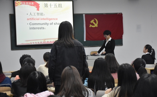 活动中,学生党员们认真学习了党的十九大胜利召开的相关盛况和习近平总书记在大会上作的报告,随后,同学们进行了十九大热词汉译英、英译汉比赛,对“新时代”“两个一百年”等15组共100个十九大热点词汇进行了翻译。同学们还选取自己关注的重点热词,交流了学习十九大精神的心得体会。
