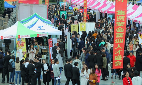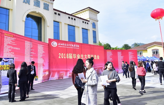 10月26日,我院2018届毕业生大型双选会在博学广场举行。来自四川、北京、上海、广东、江苏、广西、西藏、辽宁等地区的300多家用人单位前来选聘英才,我院2018届毕业生积极应聘,双选会现场气氛十分热烈。