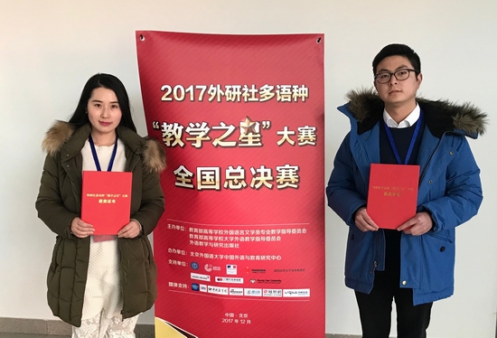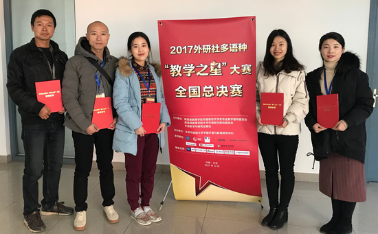 12月6日-8日,2017外研社多语种“教学之星”大赛全国总决赛在外研社国际会议中心举行。我院晋级决赛的7名教师表现出色,其中,东方语系李旋老师荣获韩语组季军,法语意大利语系杨惠老师荣获法语组季军,东方语系马丽玲老师荣获韩语组一等奖,东方语系马巍老师、郑祥雯老师荣获阿拉伯语组一等奖,德语系邱璐老师荣获德语组一等奖,葡萄牙语西班牙语系姜峥老师荣获西班牙语组二等奖。