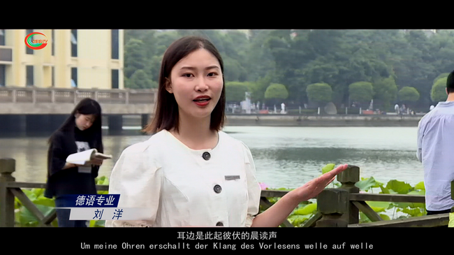 现在是五月初夏的早晨,我在南湖岸边,耳边是此起彼伏的晨读声。在远离喧闹、空气清新的校园里,你可以坐在湖边的木椅上读书,与阳光清风为伴,累了时,看看湖面的碧波和盛开的荷花,冬天还可以眺望皑皑雪山。诗与远方,就在身旁。