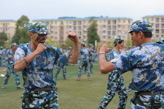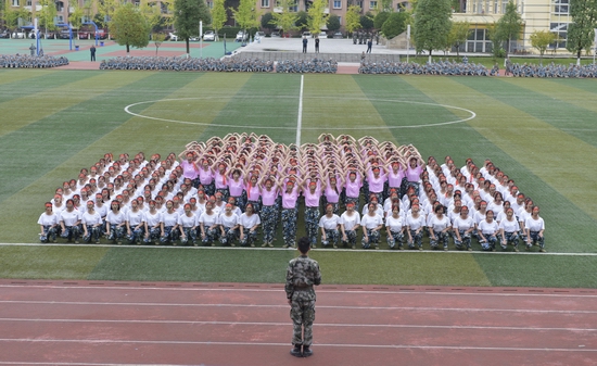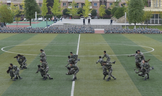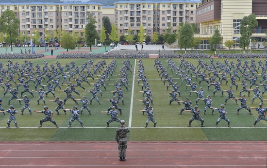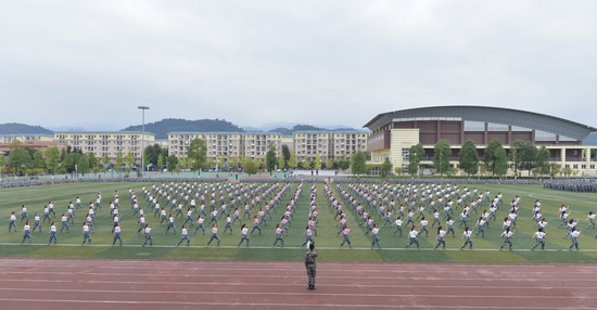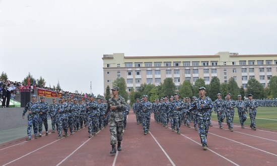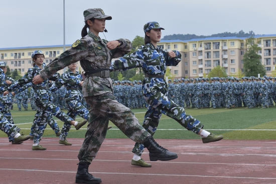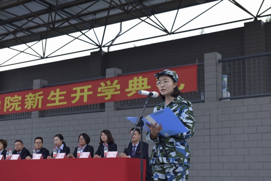 典礼上,副院长李葵宣布了学院关于表彰2018级新生军训优秀学员及优秀教官的决定,出席典礼的领导为获奖学生代表隆重颁奖。随后,2018级新生进行了军训汇报表演,全方位展示了两周的军训训练成果。在分列式表演中,同学们迈着矫健的步伐,喊着嘹亮的口号,依次通过主席台,体现了良好的精神风貌。在匕首操、军体拳、格斗表演中,同学们动作整齐,刚毅有力,展示了收获的军事技能。同学们还表演了大型团体太极舞、戏曲操,不仅弘扬了传统文化,更体现了团结协作的青春风采。