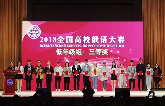 林硕(左7)荣获2018年“全国高校俄语大赛”三等奖