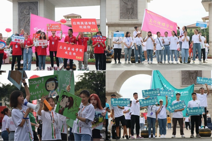走进学校,迎面而来的就是学长学姐们迎新的热情,他们身着各院系统一的服装,举着醒目的旗帜,热情地迎接每一名远道而来的新生,让新生第一时间找到集体,感受到院系大家庭的温馨。