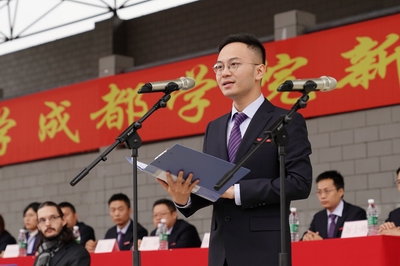 外籍教师、国际商学院的马修老师在发言中希望同学们以良好心态面对大学生活,多与老师、同学和亲人交流,祝愿同学们收获真挚友谊,学到知识技能,度过人生中最美好的一段时光。教师代表、西欧语言学院的王雪松老师介绍了自己的成长经历和专业学习的良好经验,希望同学们珍惜学习时光,扩展自身视野,提升综合素质,不负自我,不负青春。