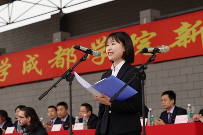 在校生代表余秋琳、新生代表张胜蓝发言