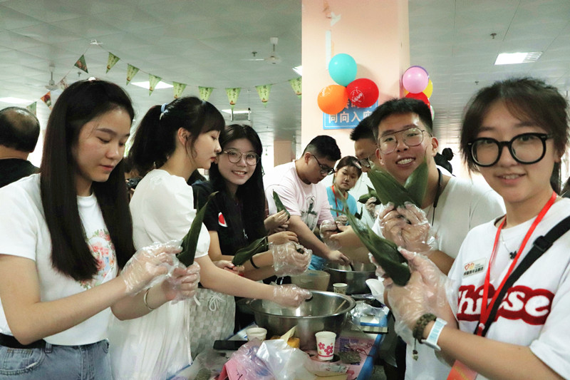 包粽子和缝香囊是全场最受欢迎的环节,师生们一起动手,先是卷粽叶、装馅料、绑粽子,后又拿起针线缝制形状各异的香囊,既体验到了劳动的乐趣,又增进了师生感情。同学们纷纷表示,吃到自己亲手包的粽子,感到格外香甜软糯。
